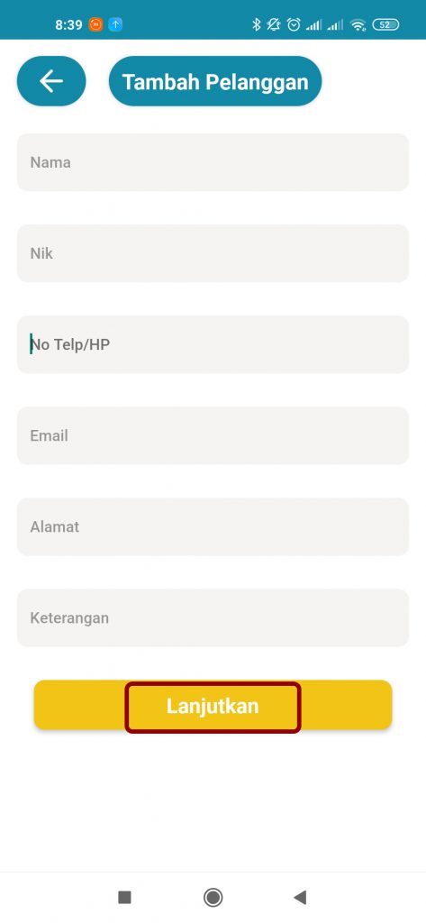 2. Setelahnya, klik ikon tambah, kemudian isi data Anda sesuai kolom yang ada