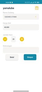 4. Isi kolom Nama Gudang, Harga Beli dan Jumlah Item yang akan dibeli. Tambahkan keterangan jika dibutuhkan. Kemudian tap Simpan